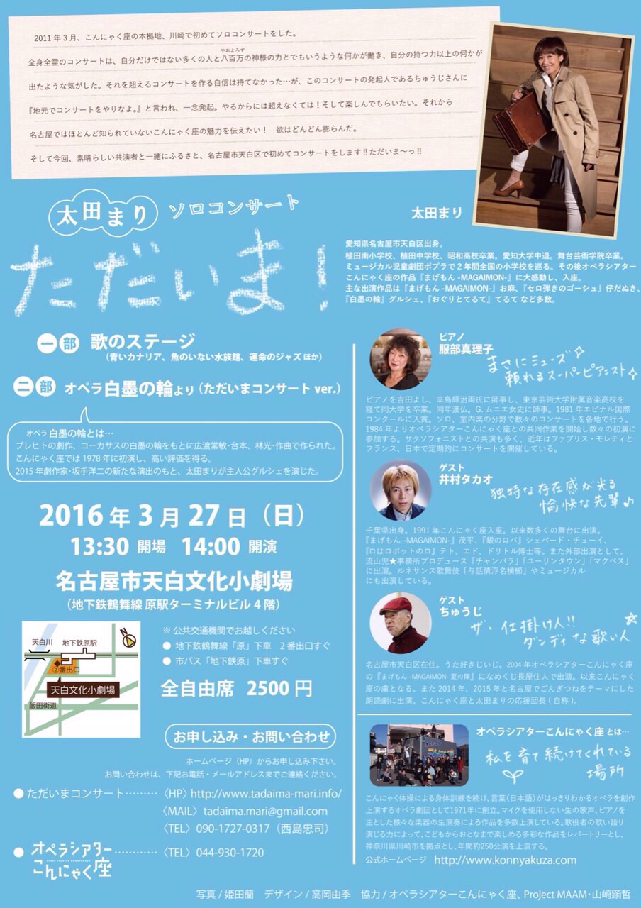 そして今回、素晴らしい共演者と一緒にふるさと、名古屋市天白区で初めてコンサートをします!!ただいま〜っ!!