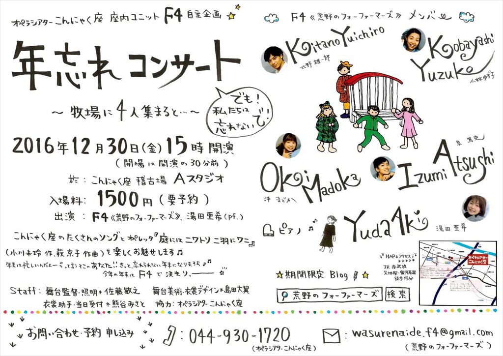 出演者:F4《荒野のフォーファーマーズ》(北野雄一郎・沖まどか・小林ゆず子・泉篤史)、湯田亜希(Pf.)