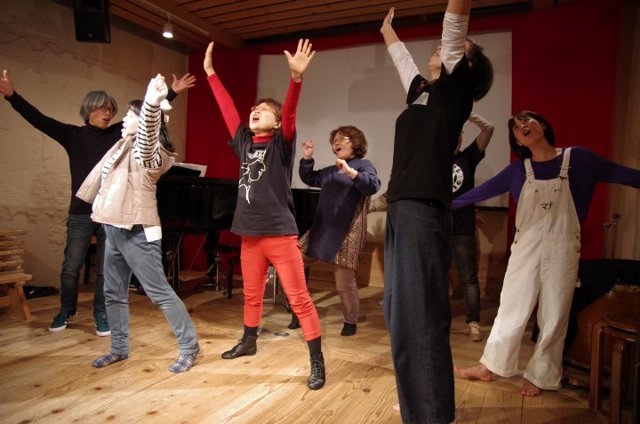 こんにゃく座の稽古場で3日間、こんにゃく座座付作曲家の林光、萩京子作曲による歌(ソング)を歌ったり、こんにゃく座の名前の由来となっている「こんにゃく体操」をたっぷり体験していただきます。